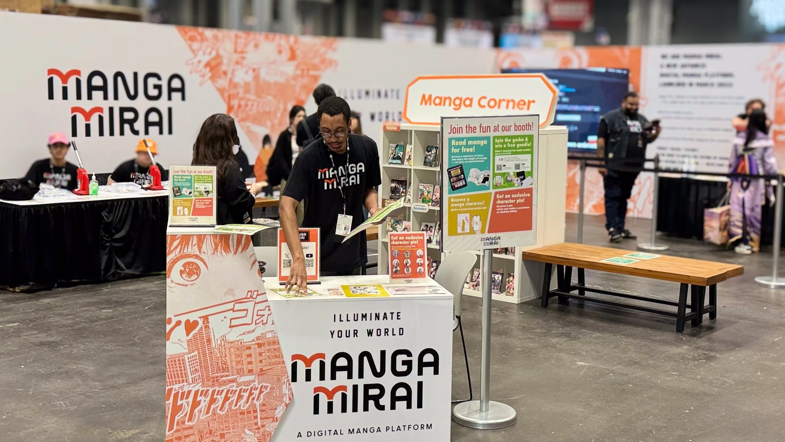 Supported sign-ups, surveys & photo-ops and manga reading area